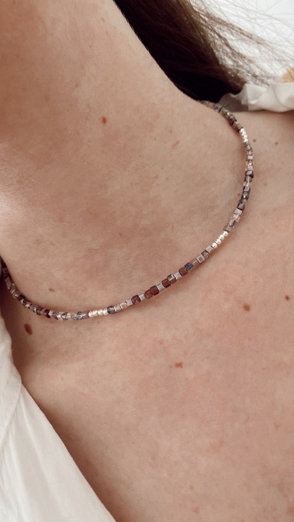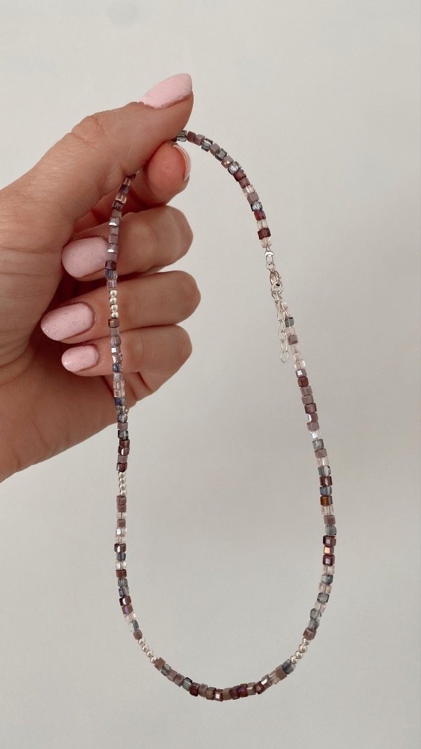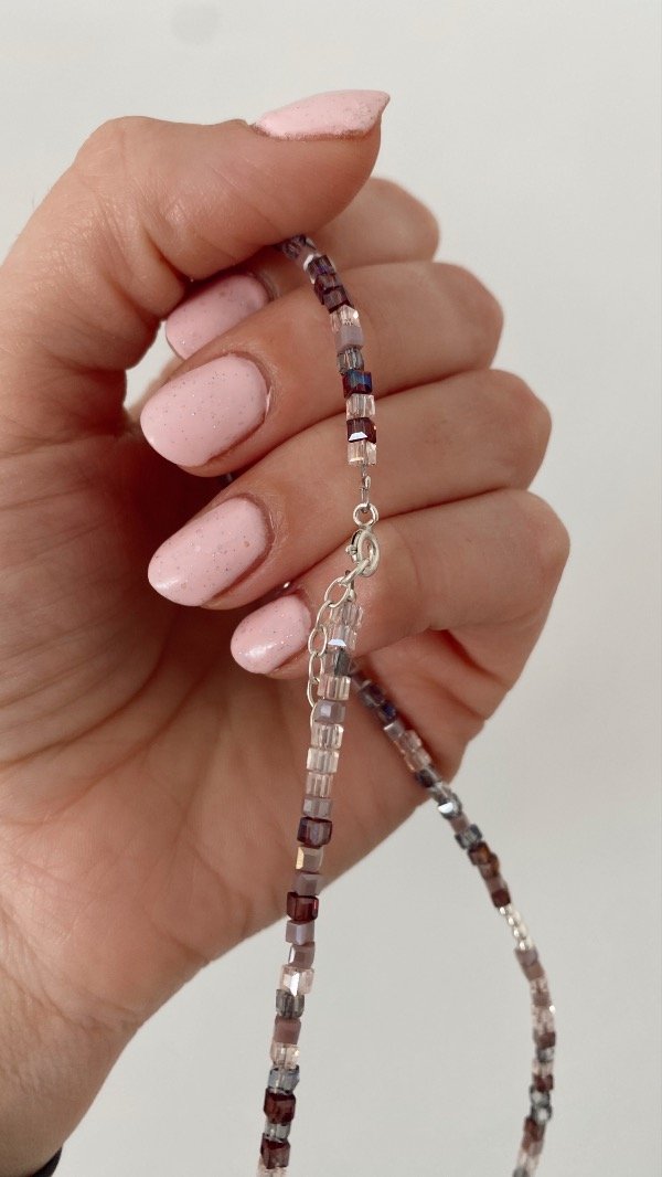 Tanza de acero , cristales , bolitas y terminales de plata 925