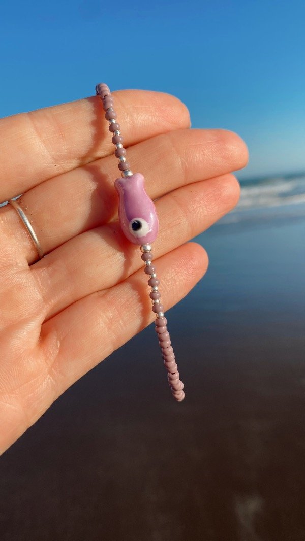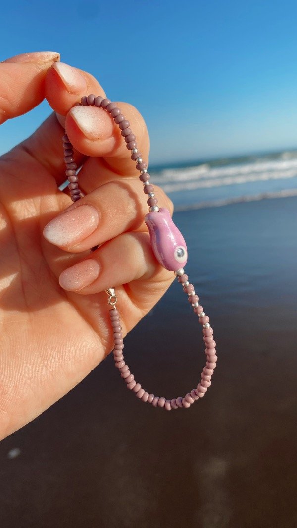 Mostacillas checas , cierre y bolitas de plata 925 com dije de ceramica