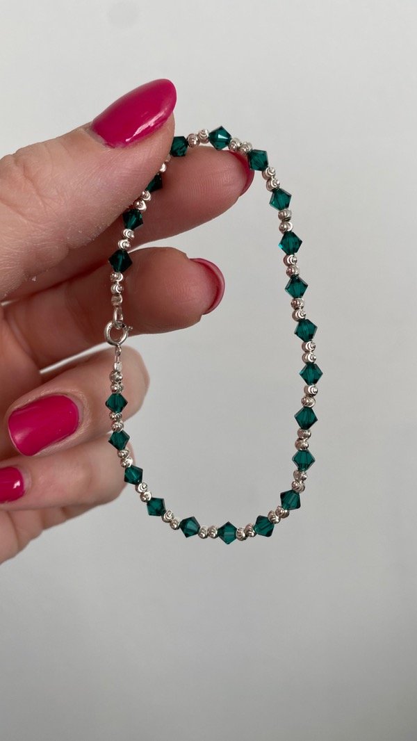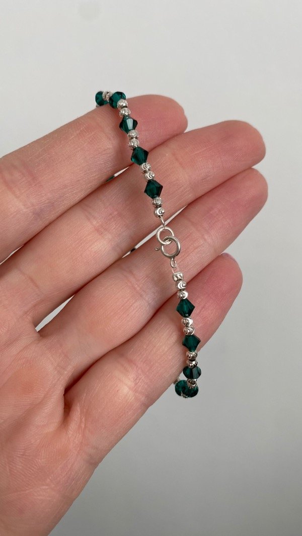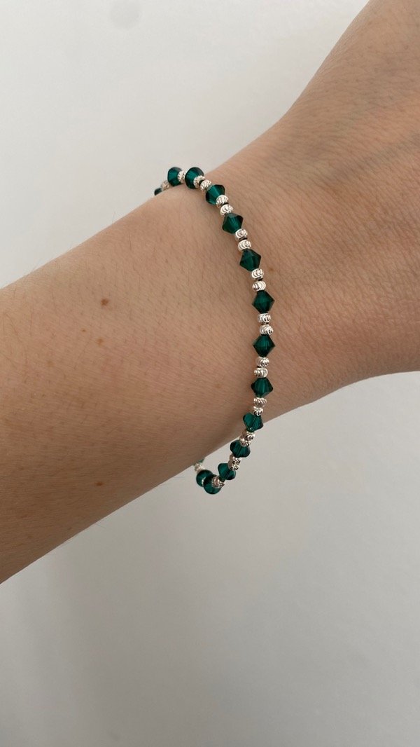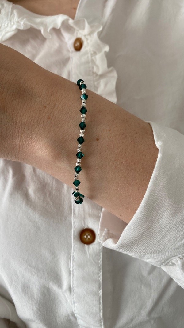 Confeccionada con cristales swarovski verdes y bolitas de plata 925
