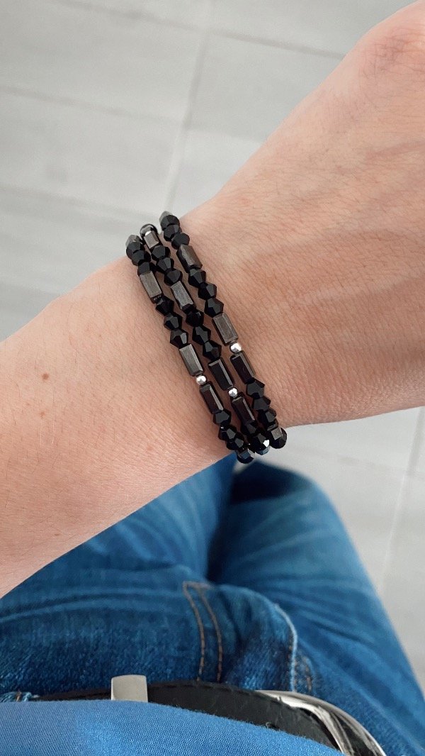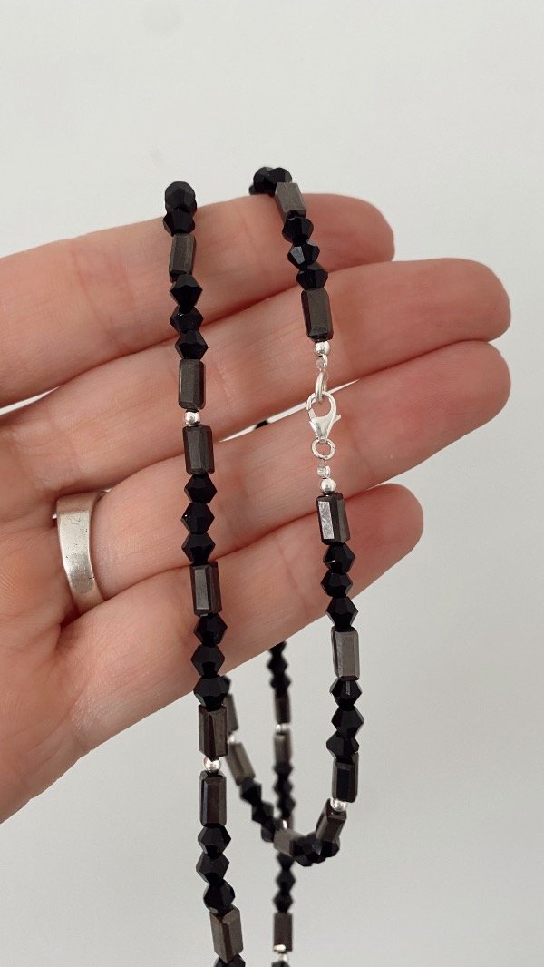 Confeccionado con cristales negros , bolitas y cierre de Plata 925.